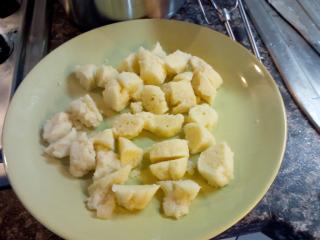 V dalším kroku si připravíme nočky. V mističce rozkvedláme vejce, postupně přisypáváme krupici a zašleháváme metličkou, než se vytvoří hustá kaše, která jde odkrajovat lžičkou. Ke konci vaření necháme nočky uvařit v horkém vývaru, hotové jsou, jakmile vyplavou. Pokud jste nočky připravili příliš velké, vylovte je a překrojte na menší kousky.