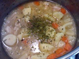 - špetku sušené petržele a sušeného libečku