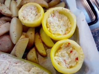Cuketové soudky plněné pikantním sýrem | recept. Cuketa je neuvěřitelně flexibilní zelenina, lze jí zahušťovat polévky, zeleninové omáčky, použít ji do sladkých moučníků. Pokud patříte k obdivovatelům cukety, tak ji povyšte do hlavní role a zkuste si podle následujícího receptu připravit cuketové soudky plněné sýrem. Nejlepší volbou je kombinace balkánského sýra se žervé, balkánský sýr dodá náplni na výrazné chuti a žervé ji trochu zjemní a spojí. K sýrům se skvěle hodí jarní cibulka a feferonka. K cuketovým soudkům doporučuji zvolit pečené brambory.