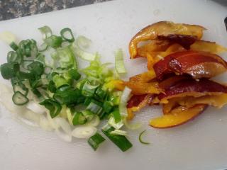 Zálivkou přelijte salát a promíchejte. Salát překryjte potravinovou fólií a vložte asi na hodinu až dvě do lednice. Sladká chuť nektarinek se tak lépe prolne s chutí zbývajících ingrediencí. Salát nakonec rozdělíme na jednotlivé porce. Posypeme nadrobeným sýrem a ozdobíme zbylými nektarinkami. Podáváme jako doplněk k pečenému masu nebo jako samostatný chod. Skvělý je i jako doplněk ke grilovaným dobrotám.