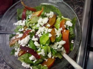 Salát s nektarinkami a balkánským sýrem | recept. Salát z letní zeleniny je klasika, která sice neomrzí, ale občas je fajn zkusit něco nového. Vyzkoušejte neotřelou kombinaci hlávkového salátu s nektarinkou a balkánským sýrem. Výsledkem je skvělá sladkokyselá chuť, kterou příjemně překvapíte všechny své blízké, pro něž salát připravujete. Na zálivku použijete běžné suroviny – olivový olej (případně sezamový olej), vinný ocet, sůl a pepř. Máte-li rádi lehká jídla, neváhejte a vyzkoušejte snadný a chutný salát s nektarinkami a balkánským sýrem.