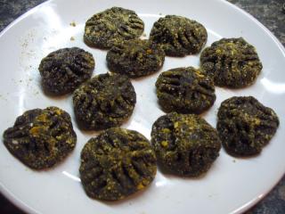 Zbytek perníku můžeme ponechat stranou a poté v něm jednotlivé placičky obalovat. Dobré je využít několik nepříliš povedených vánočních perníčků, klidně i včetně polevy. Pokud je rozemelete, poslouží stejně jako perník na strouhání, který se běžně používá k zahušťování makové náplně do buchet a koláčů.