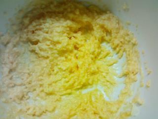 Dále si připravte pudink podle klasického postupu. Jakmile bude hotový, nechte ho zchladnout. Mezitím si v hlubší míse utřete vejce s cukrem, přimíchejte máslo a vyšlehejte do pěny. Následně přidejte tvaroh a ještě chvíli šlehejte, aby vznikl hladký krém. Poté zapracujte polovinu připraveného pudinku. Náplň vyklopte na korpus a rozetřete ji po celém prostoru.