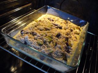 Hrnkový švestkový koláč | recept. Švestkové koláče jsou u nás doma vítané v jakékoli podobě. Pokud potřebuji upéct moučník co nejrychleji, tak sáhnu po tomto receptu. Je snadný, rychlý a přitom výborný a lze ho i snadno obměňovat. Můžete použít jiné ovoce či přidat do drobenky trochu mletých ořechů. Základem receptu je variace na piškotové těsto, následuje vrstva tvarohu, ovoce a nakonec drobenka. V této variantě receptu jsou použité švestky a drobenka je připravena z celozrnné mouky, která jí dodá jemně ořechovou příchuť.