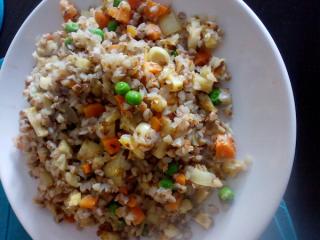 Pohankové rizoto s pečenou zeleninou | recept. Pohanka je velice zdravou plodinou, rozšiřuje se k nám spíše ze západních zemí, avšak hojně a dlouho je rozšířena i na východě, ukrajinská a ruská kuchyně se bez ní neobejde. Jde o obilovinu, jejíž chuť připomíná čočku a rýži. Příprava pohanky je poměrně snadná. Je velice univerzální surovinou, lze z ní připravit sladké i slané pokrmy. Pravidelnou konzumací pohanky uděláte dobře svému zdraví. Následující recept je jednou z mnoha variant, jak si z pohanky připravit jednoduchý a lehký oběd nebo večeři. Pokrm je bezmasý a poměrně rychlý. Při jeho přípravě budete potřebovat především kořenovou zeleninu, pro zdraví a zajímavější chuť je zařazen i zázvor.