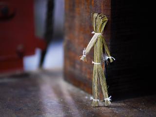 S dětmi zkuste z obilí vytvářet panenky. Základ si vyrobte podle fotografie a panenku oblečte do zbytků látek. Hezky vypadají i šaty z klásků, sušené levandule a trav.