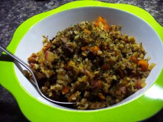Pohankové rizoto | recept. Následující recept na pohankové rizoto je ideálním pondělním jídlem, v němž spotřebujete zbytky z víkendové pečeně a přitom si odlehčíte jídelníček a skvěle pochutnáte. Potřebovat budete pohankovou lámanku, pečené hovězí, máte-li vepřové nebo kuřecí, použijte ho. Dále už postačí obyčejné suroviny, které máte pravděpodobně doma ve spíži – cibule, mrkev, kyselá okurka a ředkvičky. Pohankové rizoto můžete dochutit trochou sušené petržele a několika semínky fenyklu, s ním však nakládejte opatrně, je velmi aromatický.