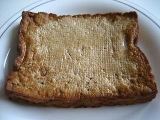 Obalované tofu jako řízek – uzené tofu nakrájíme na plátky, obalíme v tradičním trojobalu nebo těstíčku a smažíme dozlatova.