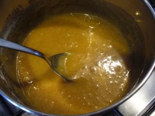Zatímco se nám peče těsto, připravíme si náplň. Máslo rozehřejeme v hrnci na středním plameni. Když nabude tekuté konzistence, přisypeme oba cukry, med a sůl. Tuto směs přivedeme k varu a za občasného míchání ponecháme povařit přibližně 2 minuty. Jakmile se začne karamel lepit, odstavíme ho z ohně.