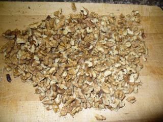 V dalším kroku na plech nasypeme všechny vlašské ořechy a také jej vložíme do vyhřáté trouby. Vlašské ořechy necháme v troubě asi 8 minut opražit dozlatova a poté je na chvíli odložíme vychladnout. Vychladlé ořechy nasekáme na menší kousky.