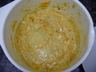 Poté přidáme olej a ještě lehce prošleháme. Polohrubou mouku prosejeme a přidáme k ní kypřící prášek. Mouku přisypeme k vaječné pěně. Dále si nahrubo nastrouháme očištěnou mrkev. Lískové oříšky umeleme a spolu s mrkví přisypeme do těsta. Všechno velice důkladně promícháme.