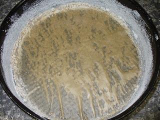 Máme-li již připravené těsto, předehřejeme si troubu na teplotu 180 °C. Dno dortové formy položíme na pečící papír a obkreslíme jej. Obkreslené dno z papíru vystřihneme a vyložíme jím dortovou formu. Boky formy důkladně vymažeme tukem a vysypeme hrubou moukou.