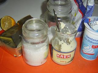 – Jestliže máme rádi křenovou chuť, můžeme množství přidaného křenu v křenové omáčce zvýšit. – Místo jedné sladké šlehačky můžeme použít zakysanou smetanu (jednu až dvě). Výsledek bude « nabřesklejší ».
