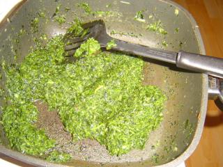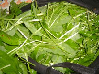 Medvědí česnek jako špenát V některých předpisech se uvádí, že se medvědí česnek přidává do špenátu. To je ale škoda, protože v kombinaci s výrazným špenátem zanikne jeho chuť a zanechá jen česnekovou stopu. Chceme-li si na medvědím česneku pochutnat, připravíme jej samotný. Je to velmi rychlé. Asi 300 gramů opraných listů (včetně řapíků a lodyh s poupaty květů) nahrubo posekáme.